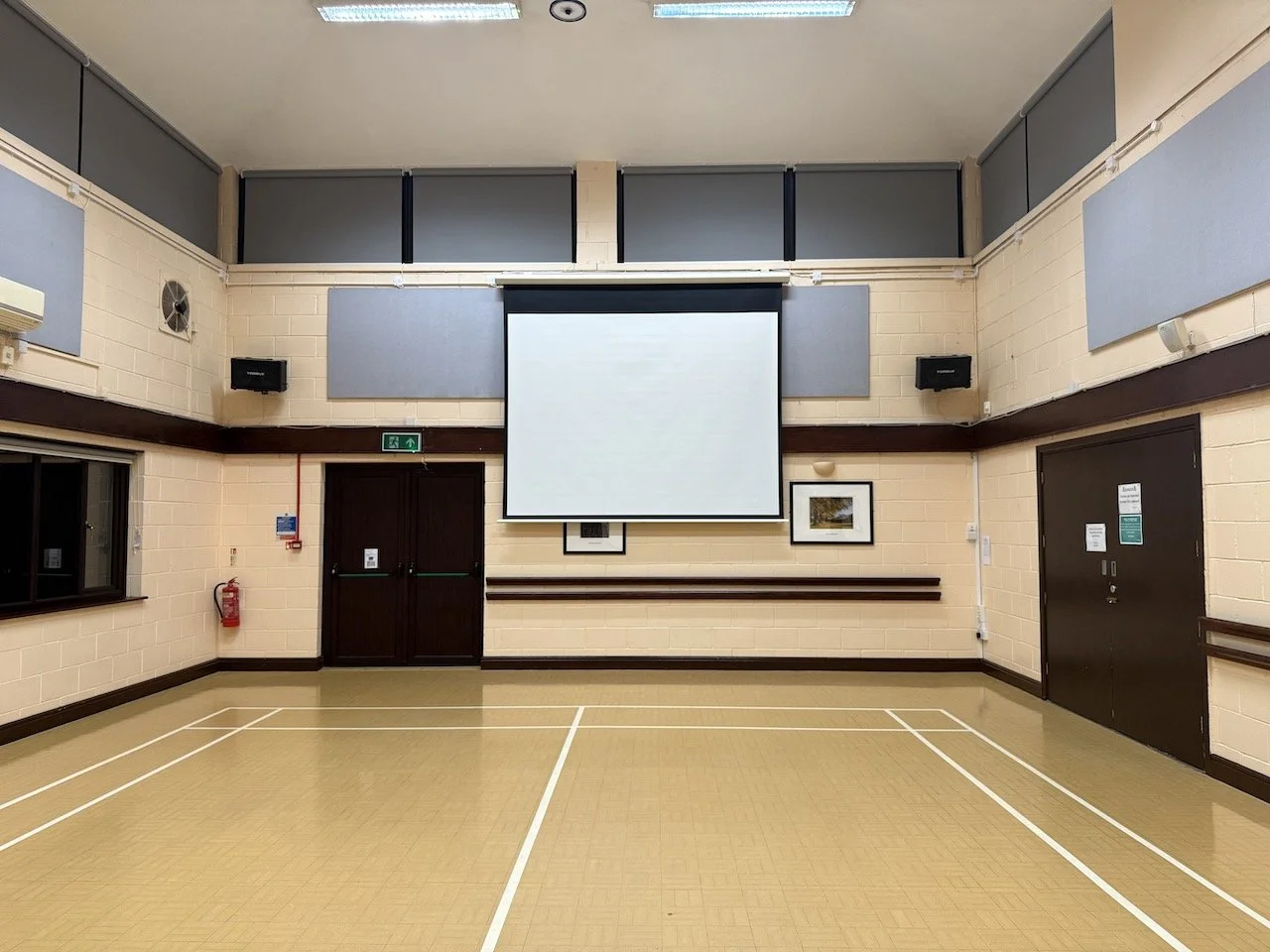 The largest room in the centre is the main hall, which is larger than a badminton court and is currently used for this purpose each Wednesday evening. The hall is regularly used for a wide range of activities such as keep fit, dance, judo, table tennis and orchestra practice. There is now a large electrically operated projector screen to enable conferences, meetings presentations and Family Cinema Events run by the centre. There are a large number of chairs and tables available making it an ideal venue for birthday parties, discos and live music. As with all rooms in the centre, the hall benefits from air-conditioning.